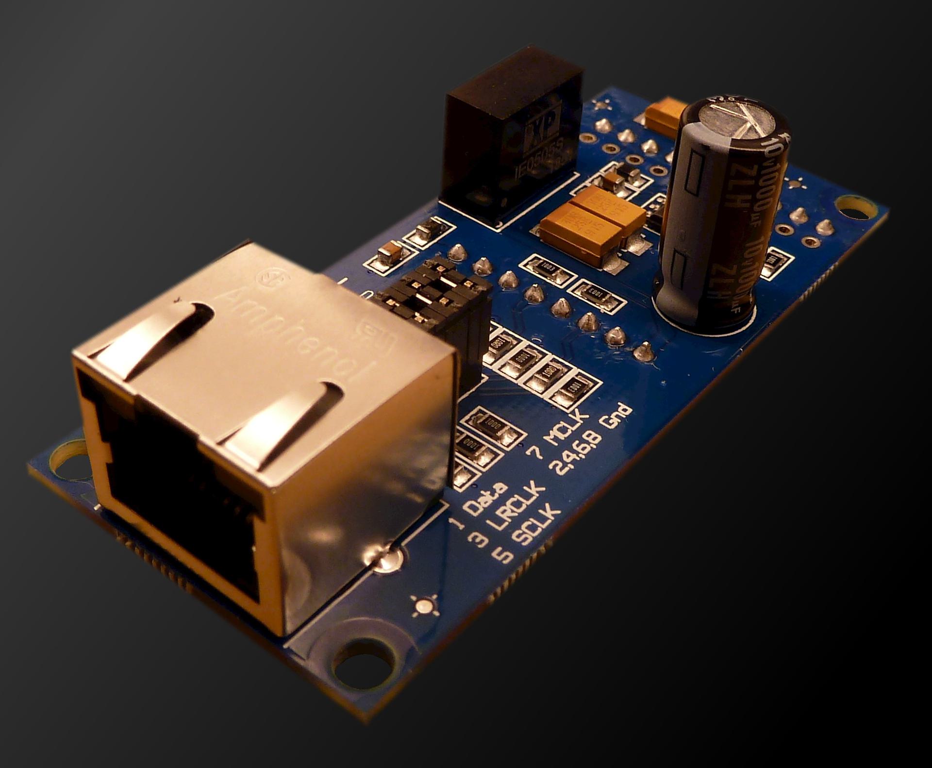 The I2S module can be installed instead of the USB module. A new technology is used to make the I2S data format more reliable. Actually this format was made for internal use and not able to drive long data lines. Sonnet is using a kind of data transport based on the typical impedance of a standard UTP cable. By using this technology it is important that both transmitter and receiver is made for this quite heavy load of 100 Ohms. As a result lengts of 30 meters between source and receiver can be used without loss and jitter.