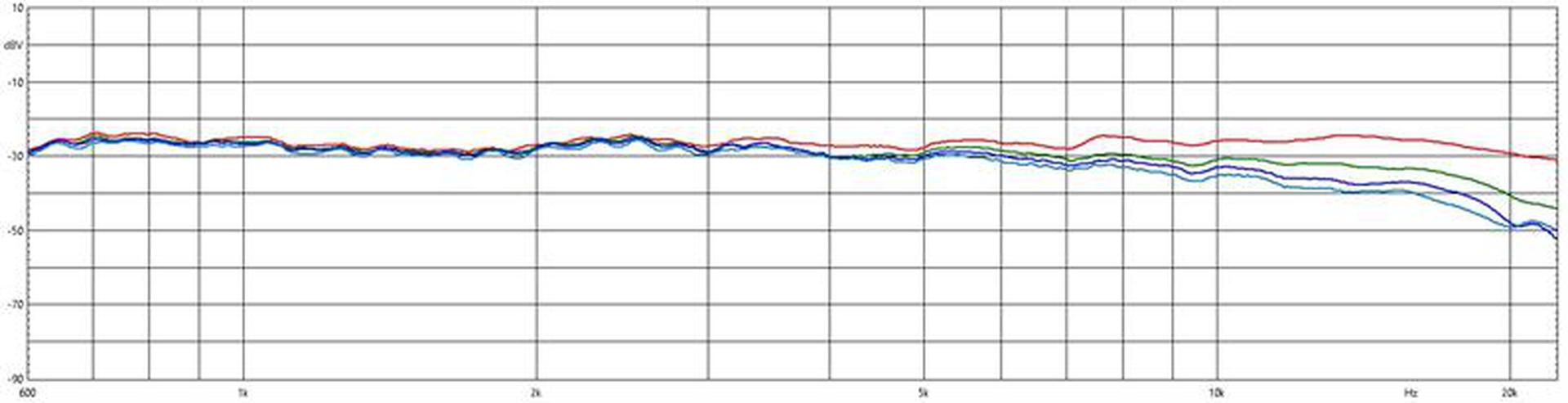 Directivity, Red 0 deg. , Green 15 deg. deg. , Dark Blue 30 deg. , Light Blue 45 deg.
